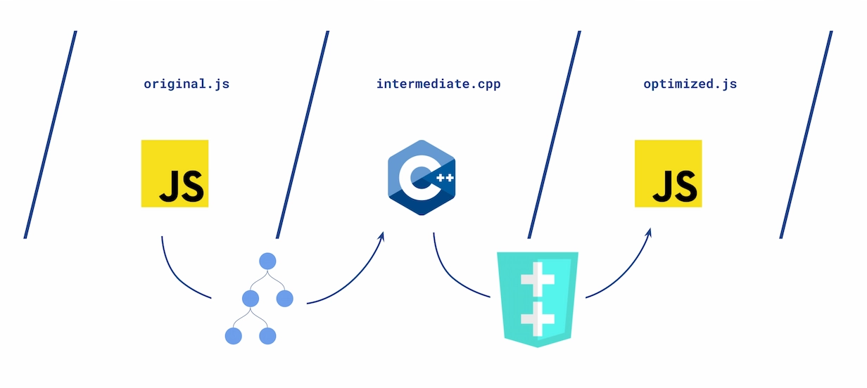 Now to get this process started, we need to process JavaScript code and output either Cheerp compatible LLVM IR or directly C++ code (conformant with Cheerp’s model).